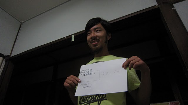 入り口は古びた昔ながらの木の引き戸で鍵が掛かっていて中に入れません、 そこは、フーテンの寅さんに出てくるタコ社長の町工場といった風情です。(^_^;) @ A 靴を脱いで2階に上がる階段は、これも昔懐かしい学生の下宿屋という風情ですが、 そこにはソウイチロウ君と同居人の芸大の大学院生ナガツ君、現役芸大生・モリ君 それに今回レコードを持ってきたこの日の主役で年配の深川さんの3名が紹介されました。 最初から世代を超えた、フランクな付き合いが出来る空気があって、私もユキもスグに馴染んでしまいました。@ A B C D